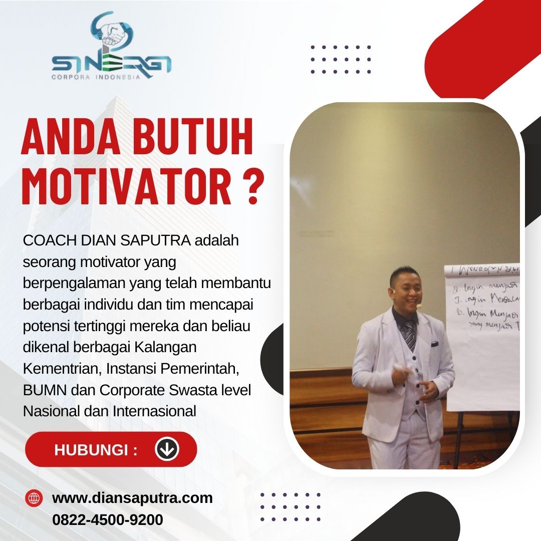 Anda Berada di Info Yang Tepat. Dian Saputra adalah seorang Motivator sekaligus Trainer sinergi corpora Indonesia yang sudah berpengalaman selama 13 Tahun. Coach Dian Saputra selalu memberikan materi yang fun dan Berdampak guna meningkatkan kinerja dan produktivitas SDM di Bisnis Anda. Coach Dian Saputra dikenal oleh Kalangan Corporate Seperti BUMN, Dinas Pemerintah, Kementerian, Hingga Corporate Swasta Lainnya berskala Nasional dan Internasional.