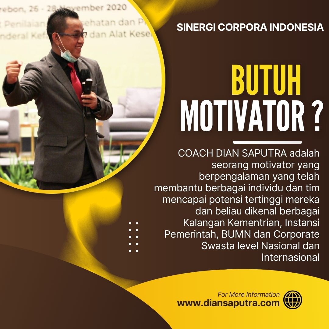 Anda Berada di Info Yang Tepat. Dian Saputra adalah seorang Motivator sekaligus Trainer sinergi corpora Indonesia yang sudah berpengalaman selama 13 Tahun. Coach Dian Saputra selalu memberikan materi yang fun dan Berdampak guna meningkatkan kinerja dan produktivitas SDM di Bisnis Anda. Coach Dian Saputra dikenal oleh Kalangan Corporate Seperti BUMN, Dinas Pemerintah, Kementerian, Hingga Corporate Swasta Lainnya berskala Nasional dan Internasional.