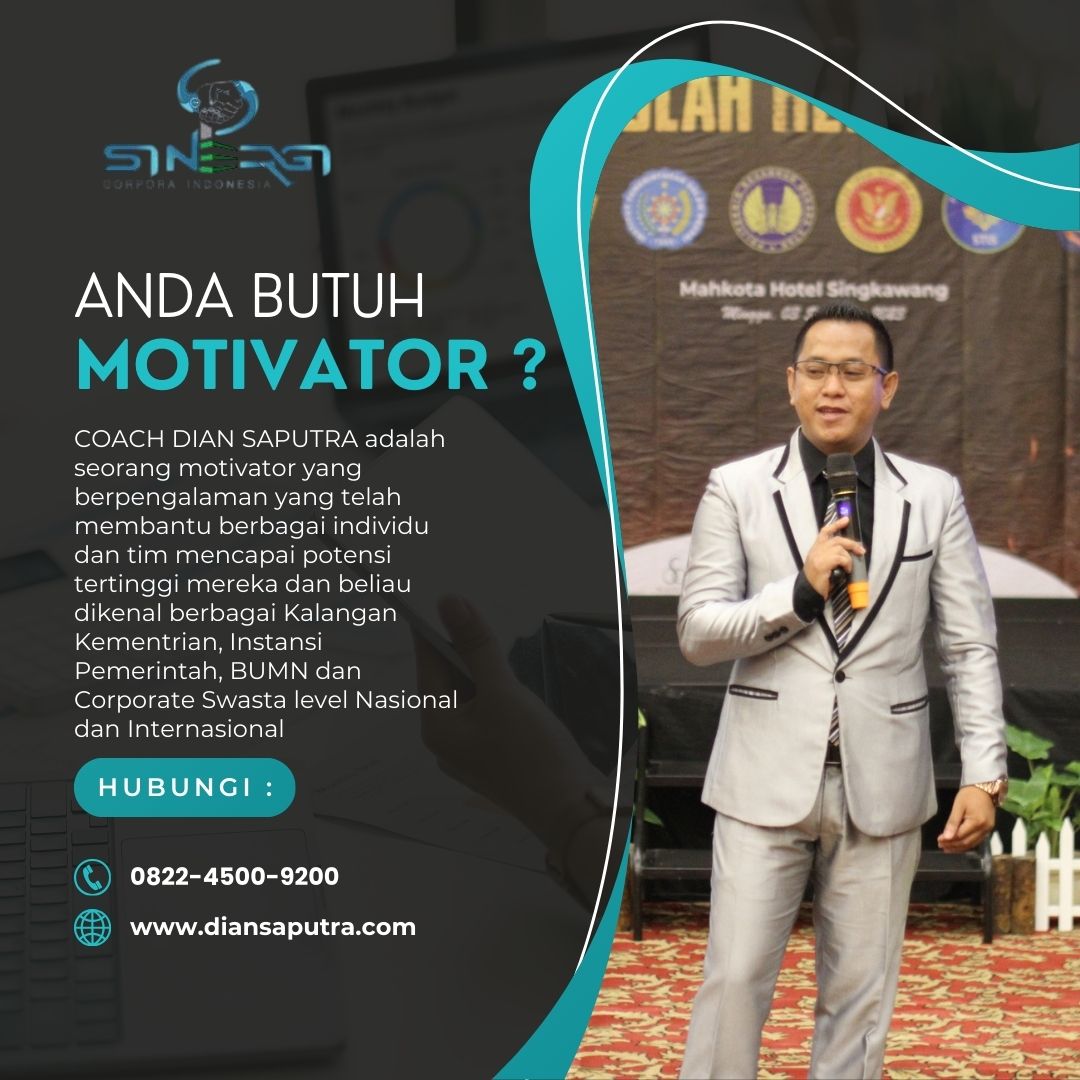 Anda Berada di Info Yang Tepat. Dian Saputra adalah seorang Motivator sekaligus Trainer sinergi corpora Indonesia yang sudah berpengalaman selama 13 Tahun. Coach Dian Saputra selalu memberikan materi yang fun dan Berdampak guna meningkatkan kinerja dan produktivitas SDM di Bisnis Anda. Coach Dian Saputra dikenal oleh Kalangan Corporate Seperti BUMN, Dinas Pemerintah, Kementerian, Hingga Corporate Swasta Lainnya berskala Nasional dan Internasional.