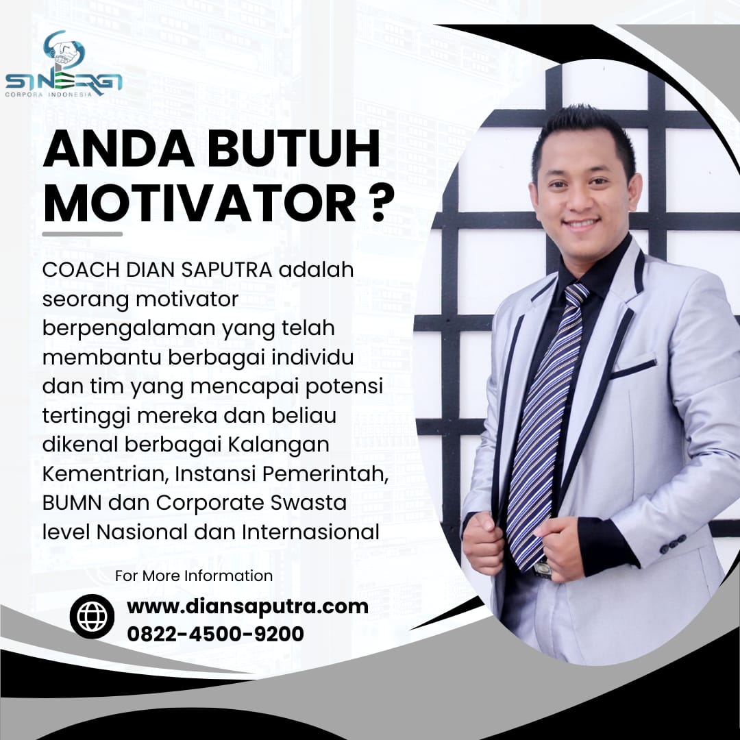 Anda Berada di Info Yang Tepat. Dian Saputra adalah seorang Motivator sekaligus Trainer sinergi corpora Indonesia yang sudah berpengalaman selama 13 Tahun. Coach Dian Saputra selalu memberikan materi yang fun dan Berdampak guna meningkatkan kinerja dan produktivitas SDM di Bisnis Anda. Coach Dian Saputra dikenal oleh Kalangan Corporate Seperti BUMN, Dinas Pemerintah, Kementerian, Hingga Corporate Swasta Lainnya berskala Nasional dan Internasional.