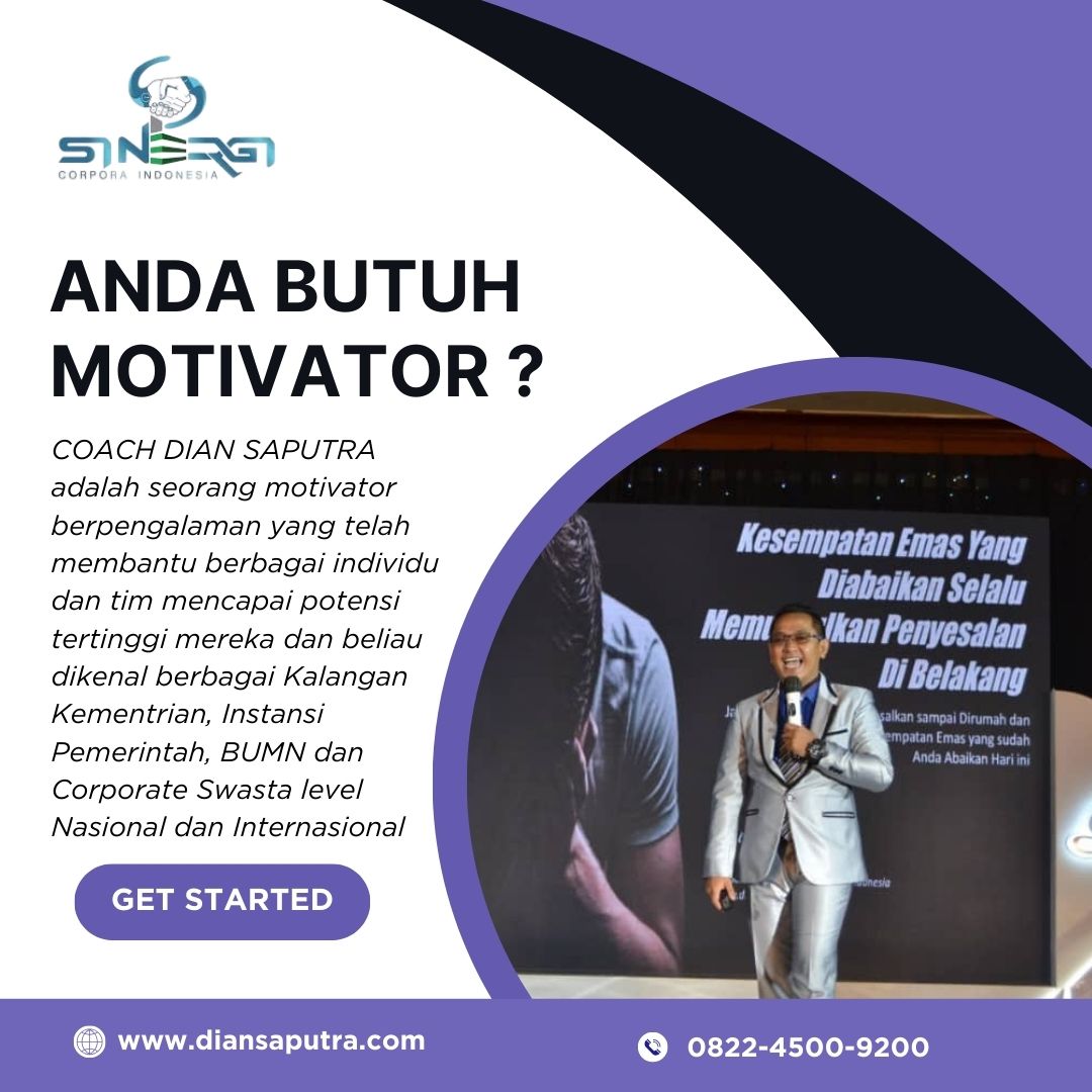 Anda Berada di Info Yang Tepat. Dian Saputra adalah seorang Motivator sekaligus Trainer sinergi corpora Indonesia yang sudah berpengalaman selama 13 Tahun. Coach Dian Saputra selalu memberikan materi yang fun dan Berdampak guna meningkatkan kinerja dan produktivitas SDM di Bisnis Anda. Coach Dian Saputra dikenal oleh Kalangan Corporate Seperti BUMN, Dinas Pemerintah, Kementerian, Hingga Corporate Swasta Lainnya berskala Nasional dan Internasional.