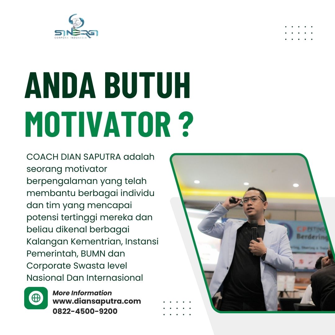 Anda Berada di Info Yang Tepat. Dian Saputra adalah seorang Motivator sekaligus Trainer sinergi corpora Indonesia yang sudah berpengalaman selama 13 Tahun. Coach Dian Saputra selalu memberikan materi yang fun dan Berdampak guna meningkatkan kinerja dan produktivitas SDM di Bisnis Anda. Coach Dian Saputra dikenal oleh Kalangan Corporate Seperti BUMN, Dinas Pemerintah, Kementerian, Hingga Corporate Swasta Lainnya berskala Nasional dan Internasional.