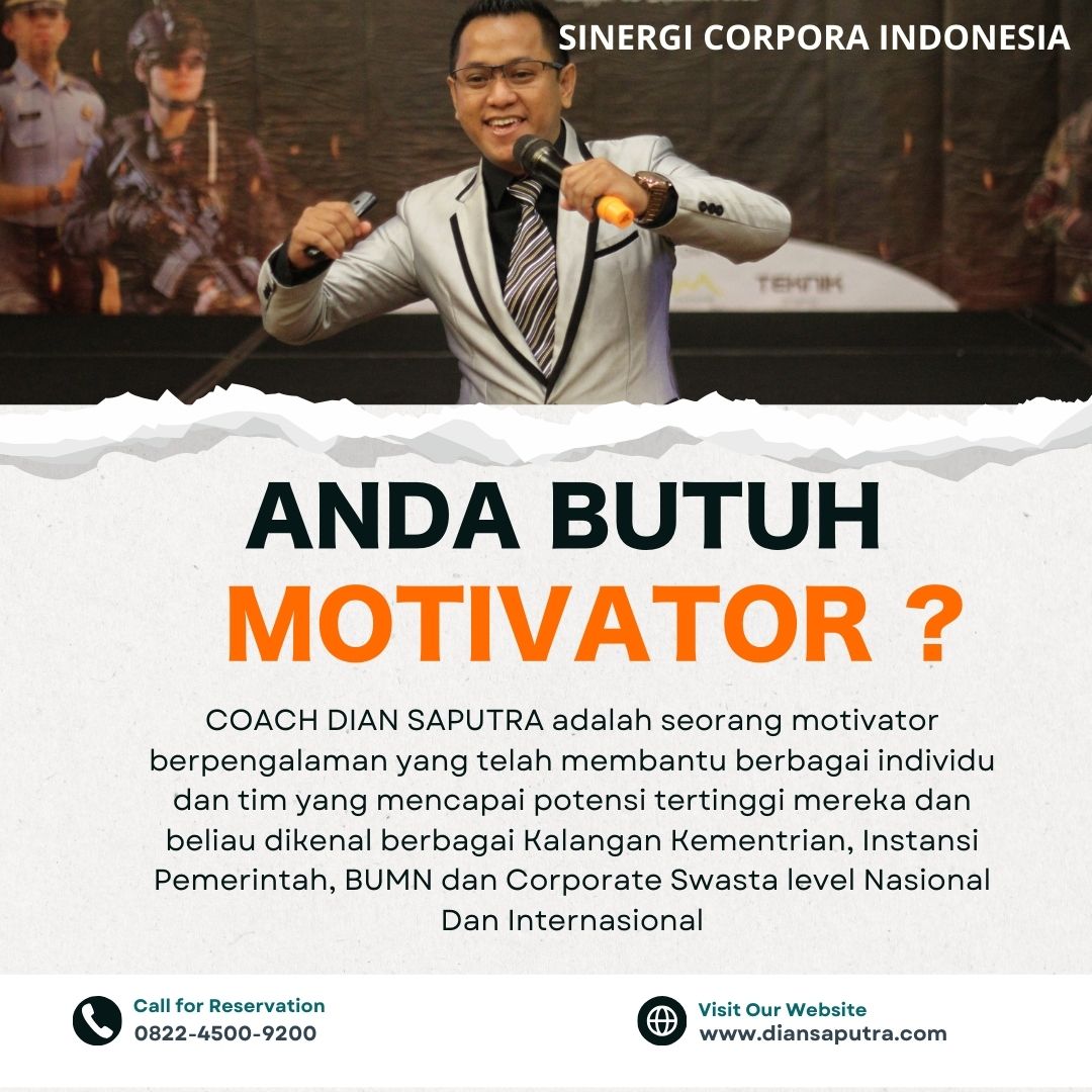 Anda Berada di Info Yang Tepat. Dian Saputra adalah seorang Motivator sekaligus Trainer sinergi corpora Indonesia yang sudah berpengalaman selama 13 Tahun. Coach Dian Saputra selalu memberikan materi yang fun dan Berdampak guna meningkatkan kinerja dan produktivitas SDM di Bisnis Anda. Coach Dian Saputra dikenal oleh Kalangan Corporate Seperti BUMN, Dinas Pemerintah, Kementerian, Hingga Corporate Swasta Lainnya berskala Nasional dan Internasional.