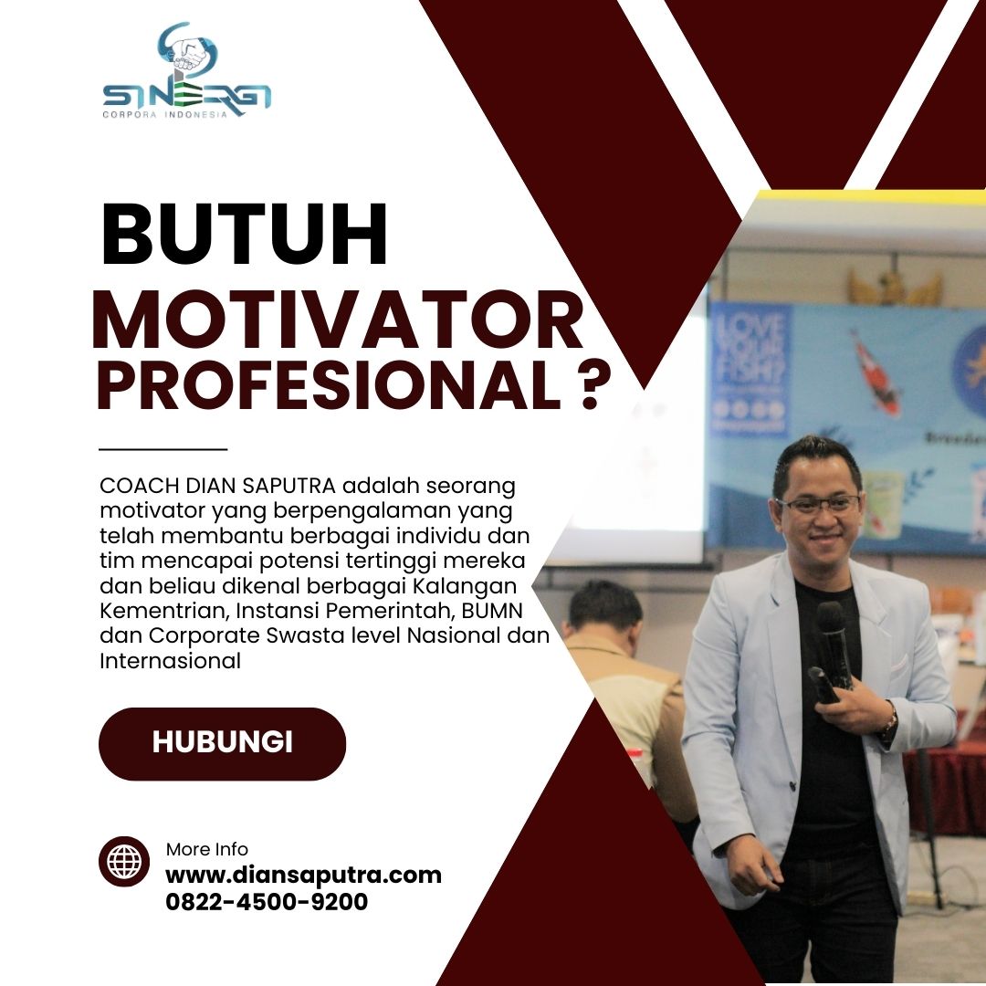Anda Berada di Info Yang Tepat. Dian Saputra adalah seorang Motivator sekaligus Trainer sinergi corpora Indonesia yang sudah berpengalaman selama 13 Tahun. Coach Dian Saputra selalu memberikan materi yang fun dan Berdampak guna meningkatkan kinerja dan produktivitas SDM di Bisnis Anda. Coach Dian Saputra dikenal oleh Kalangan Corporate Seperti BUMN, Dinas Pemerintah, Kementerian, Hingga Corporate Swasta Lainnya berskala Nasional dan Internasional.