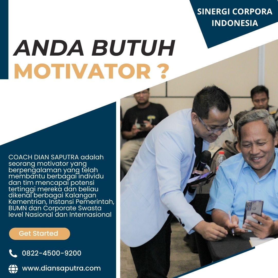 Anda Berada di Info Yang Tepat. Dian Saputra adalah seorang Motivator sekaligus Trainer sinergi corpora Indonesia yang sudah berpengalaman selama 13 Tahun. Coach Dian Saputra selalu memberikan materi yang fun dan Berdampak guna meningkatkan kinerja dan produktivitas SDM di Bisnis Anda. Coach Dian Saputra dikenal oleh Kalangan Corporate Seperti BUMN, Dinas Pemerintah, Kementerian, Hingga Corporate Swasta Lainnya berskala Nasional dan Internasional.