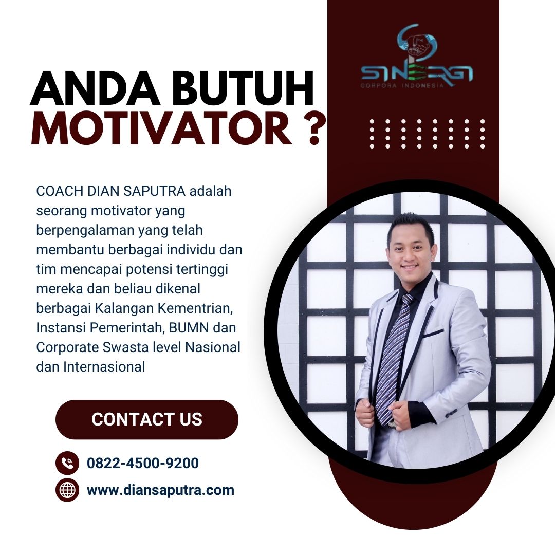 Anda Berada di Info Yang Tepat. Dian Saputra adalah seorang Motivator sekaligus Trainer sinergi corpora Indonesia yang sudah berpengalaman selama 13 Tahun. Coach Dian Saputra selalu memberikan materi yang fun dan Berdampak guna meningkatkan kinerja dan produktivitas SDM di Bisnis Anda. Coach Dian Saputra dikenal oleh Kalangan Corporate Seperti BUMN, Dinas Pemerintah, Kementerian, Hingga Corporate Swasta Lainnya berskala Nasional dan Internasional.