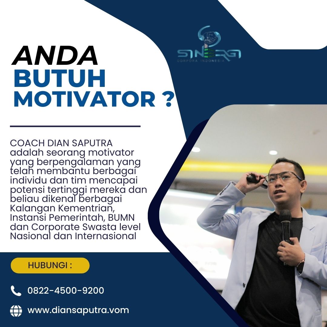 Anda Berada di Info Yang Tepat. Dian Saputra adalah seorang Motivator sekaligus Trainer sinergi corpora Indonesia yang sudah berpengalaman selama 13 Tahun. Coach Dian Saputra selalu memberikan materi yang fun dan Berdampak guna meningkatkan kinerja dan produktivitas SDM di Bisnis Anda. Coach Dian Saputra dikenal oleh Kalangan Corporate Seperti BUMN, Dinas Pemerintah, Kementerian, Hingga Corporate Swasta Lainnya berskala Nasional dan Internasional.