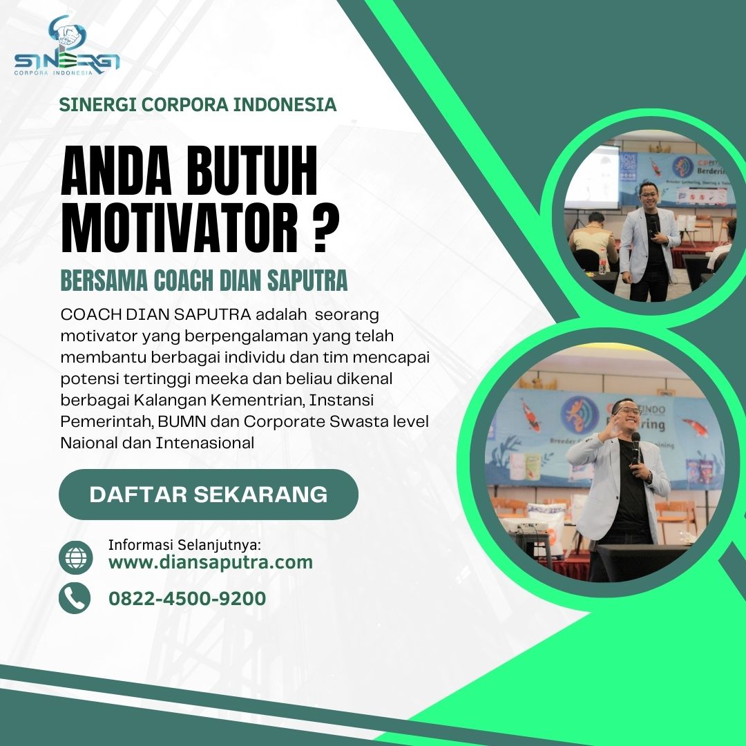 Anda Berada di Info Yang Tepat. Dian Saputra adalah seorang Motivator sekaligus Trainer sinergi corpora Indonesia yang sudah berpengalaman selama 13 Tahun. Coach Dian Saputra selalu memberikan materi yang fun dan Berdampak guna meningkatkan kinerja dan produktivitas SDM di Bisnis Anda. Coach Dian Saputra dikenal oleh Kalangan Corporate Seperti BUMN, Dinas Pemerintah, Kementerian, Hingga Corporate Swasta Lainnya berskala Nasional dan Internasional.