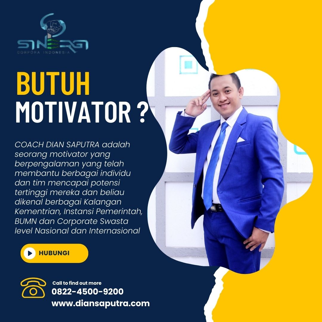 Anda Berada di Info Yang Tepat. Dian Saputra adalah seorang Motivator sekaligus Trainer sinergi corpora Indonesia yang sudah berpengalaman selama 13 Tahun. Coach Dian Saputra selalu memberikan materi yang fun dan Berdampak guna meningkatkan kinerja dan produktivitas SDM di Bisnis Anda. Coach Dian Saputra dikenal oleh Kalangan Corporate Seperti BUMN, Dinas Pemerintah, Kementerian, Hingga Corporate Swasta Lainnya berskala Nasional dan Internasional.