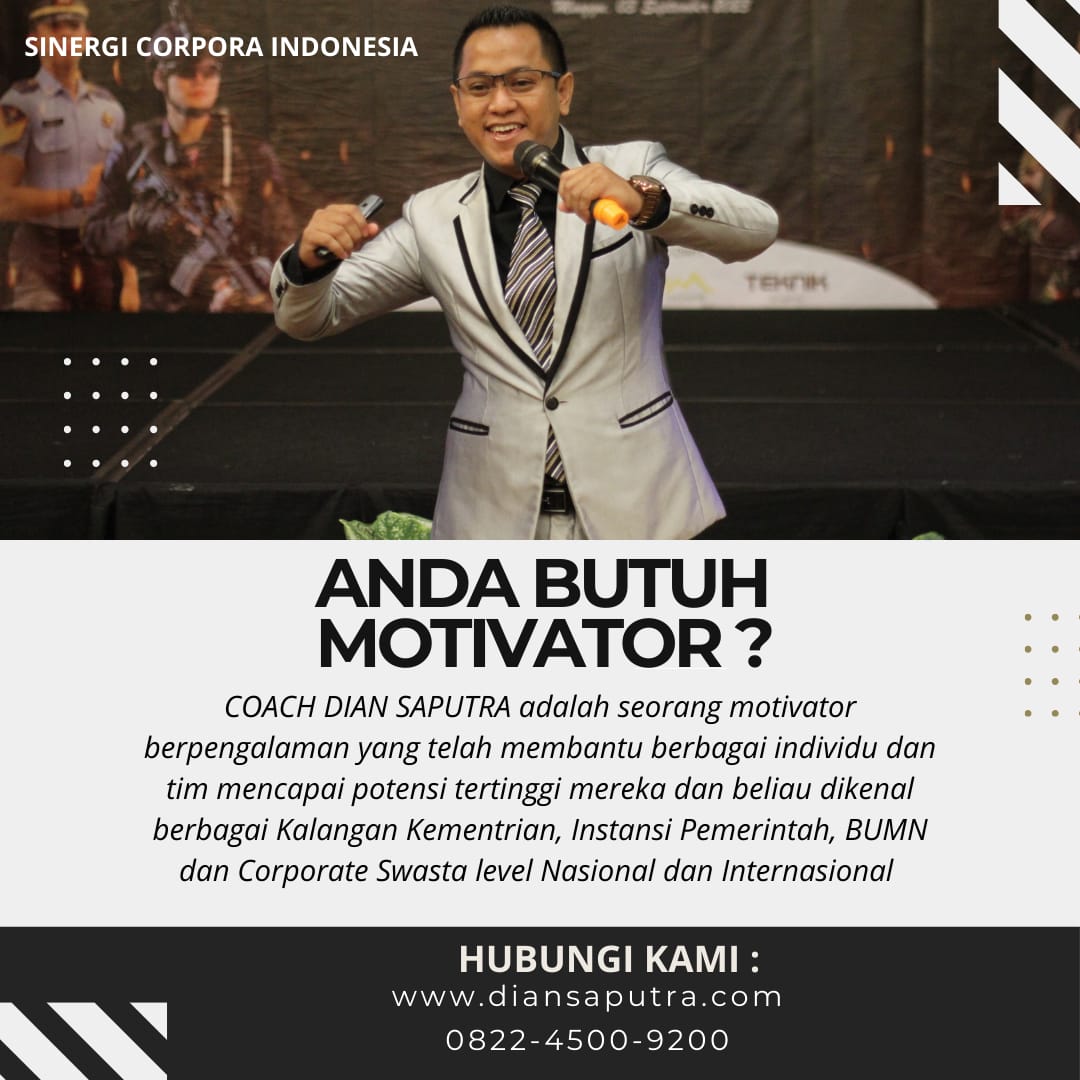 Anda Berada di Info Yang Tepat. Dian Saputra adalah seorang Motivator sekaligus Trainer sinergi corpora Indonesia yang sudah berpengalaman selama 13 Tahun. Coach Dian Saputra selalu memberikan materi yang fun dan Berdampak guna meningkatkan kinerja dan produktivitas SDM di Bisnis Anda. Coach Dian Saputra dikenal oleh Kalangan Corporate Seperti BUMN, Dinas Pemerintah, Kementerian, Hingga Corporate Swasta Lainnya berskala Nasional dan Internasional.