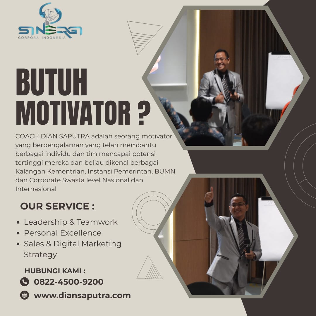 Anda Berada di Info Yang Tepat. Dian Saputra adalah seorang Motivator sekaligus Trainer sinergi corpora Indonesia yang sudah berpengalaman selama 13 Tahun. Coach Dian Saputra selalu memberikan materi yang fun dan Berdampak guna meningkatkan kinerja dan produktivitas SDM di Bisnis Anda. Coach Dian Saputra dikenal oleh Kalangan Corporate Seperti BUMN, Dinas Pemerintah, Kementerian, Hingga Corporate Swasta Lainnya berskala Nasional dan Internasional.