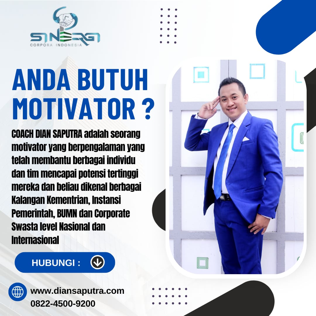 Sinergi Corpora Indonesia, yang dipimpin oleh Coach Dian Saputra, hadir sebagai perusahaan terdepan dalam jasa pelatihan dan konsultasi pengembangan Sumber Daya Manusia (SDM), yang berdiri sejak tahun 2011. Dengan pondasi ilmu psikologi modern yang berpadu dengan pendekatan spiritual, Coach Dian Saputra sebagai Jasa motivasi sales Batang telah di percaya oleh berbagai kementerian, instansi pemerintah, BUMN, serta korporasi swasta baik nasional maupun internasional