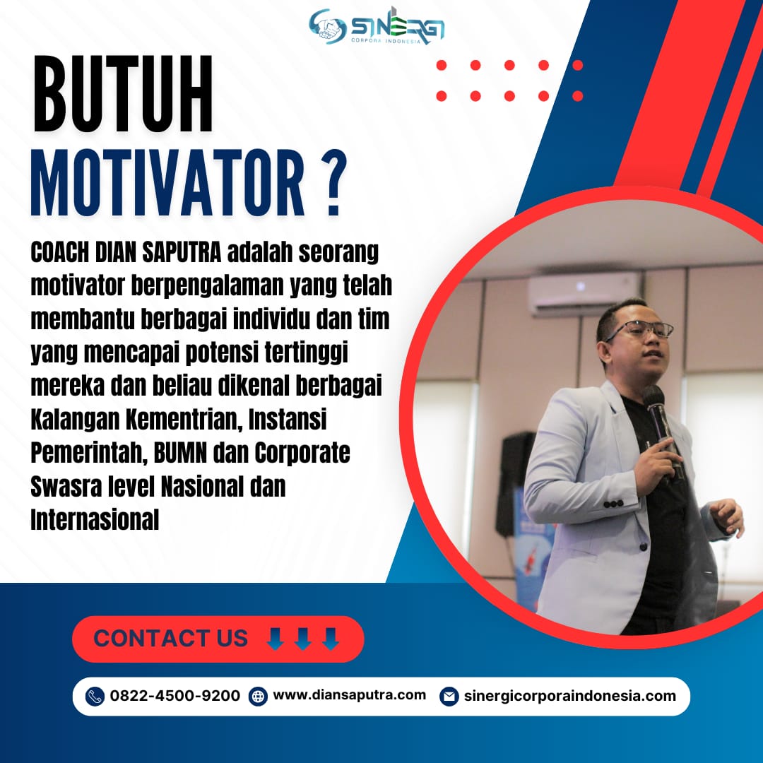 Anda Berada di Info Yang Tepat. Dian Saputra adalah seorang Motivator sekaligus Trainer sinergi corpora Indonesia yang sudah berpengalaman selama 13 Tahun. Coach Dian Saputra selalu memberikan materi yang fun dan Berdampak guna meningkatkan kinerja dan produktivitas SDM di Bisnis Anda. Coach Dian Saputra dikenal oleh Kalangan Corporate Seperti BUMN, Dinas Pemerintah, Kementerian, Hingga Corporate Swasta Lainnya berskala Nasional dan Internasional.