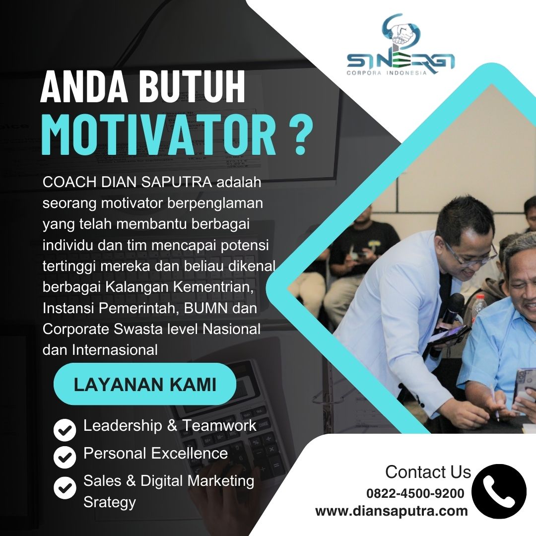 Anda Berada di Info Yang Tepat. Dian Saputra adalah seorang Motivator sekaligus Trainer sinergi corpora Indonesia yang sudah berpengalaman selama 13 Tahun. Coach Dian Saputra selalu memberikan materi yang fun dan Berdampak guna meningkatkan kinerja dan produktivitas SDM di Bisnis Anda. Coach Dian Saputra dikenal oleh Kalangan Corporate Seperti BUMN, Dinas Pemerintah, Kementerian, Hingga Corporate Swasta Lainnya berskala Nasional dan Internasional.
