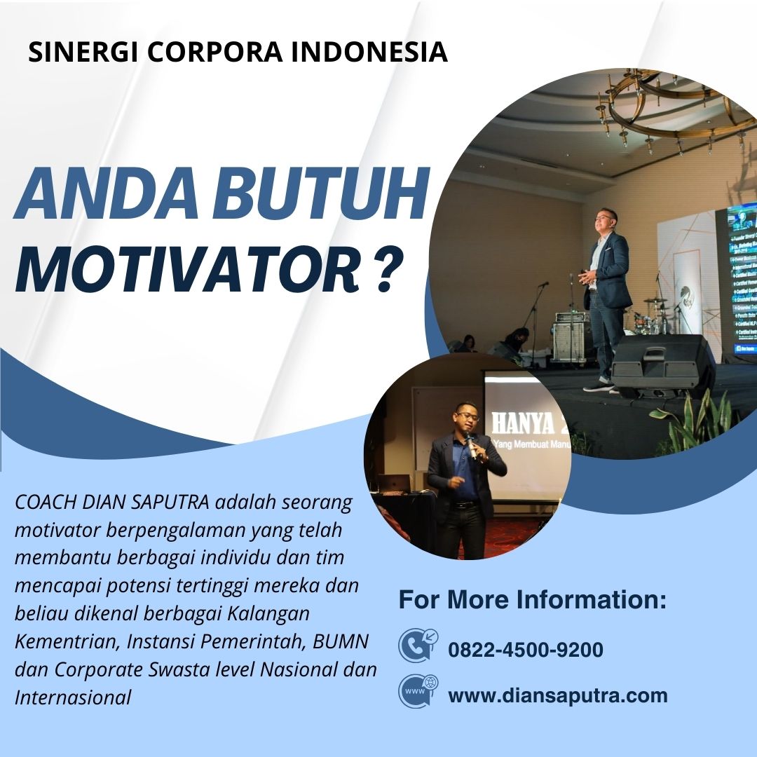 Sinergi Corpora Indonesia, yang dipimpin oleh Coach Dian Saputra, hadir sebagai perusahaan terdepan dalam jasa pelatihan dan konsultasi pengembangan Sumber Daya Manusia (SDM), yang berdiri sejak tahun 2011. Dengan pondasi ilmu psikologi modern yang berpadu dengan pendekatan spiritual, Coach Dian Saputra sebagai Jasa motivasi sales Klaten telah di percaya oleh berbagai kementerian, instansi pemerintah, BUMN, serta korporasi swasta baik nasional maupun internasional
