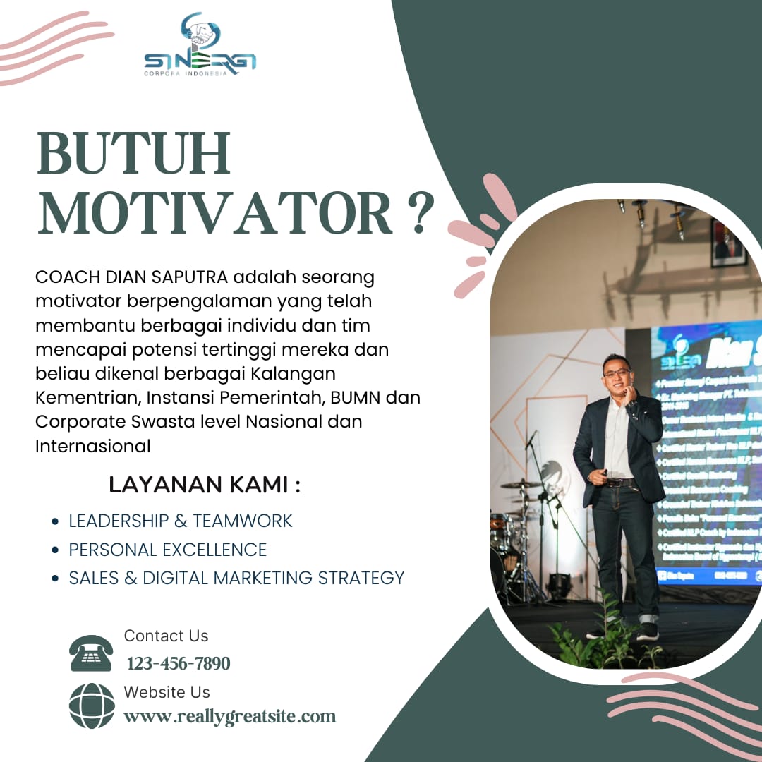 Anda Berada di Info Yang Tepat. Dian Saputra adalah seorang Motivator sekaligus Trainer sinergi corpora Indonesia yang sudah berpengalaman selama 13 Tahun. Coach Dian Saputra selalu memberikan materi yang fun dan Berdampak guna meningkatkan kinerja dan produktivitas SDM di Bisnis Anda. Coach Dian Saputra dikenal oleh Kalangan Corporate Seperti BUMN, Dinas Pemerintah, Kementerian, Hingga Corporate Swasta Lainnya berskala Nasional dan Internasional.