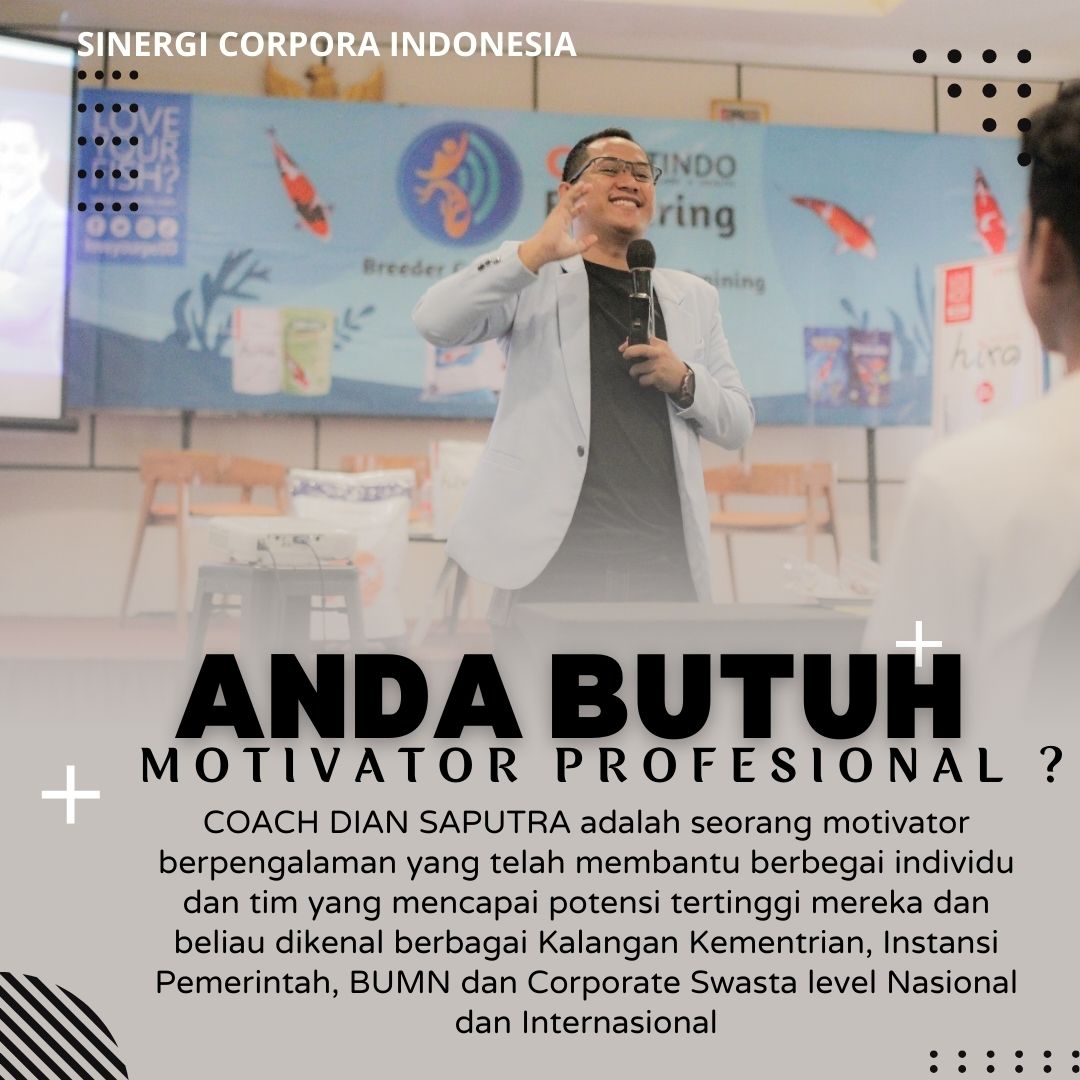 Anda Berada di Info Yang Tepat. Dian Saputra adalah seorang Motivator sekaligus Trainer sinergi corpora Indonesia yang sudah berpengalaman selama 13 Tahun. Coach Dian Saputra selalu memberikan materi yang fun dan Berdampak guna meningkatkan kinerja dan produktivitas SDM di Bisnis Anda. Coach Dian Saputra dikenal oleh Kalangan Corporate Seperti BUMN, Dinas Pemerintah, Kementerian, Hingga Corporate Swasta Lainnya berskala Nasional dan Internasional.