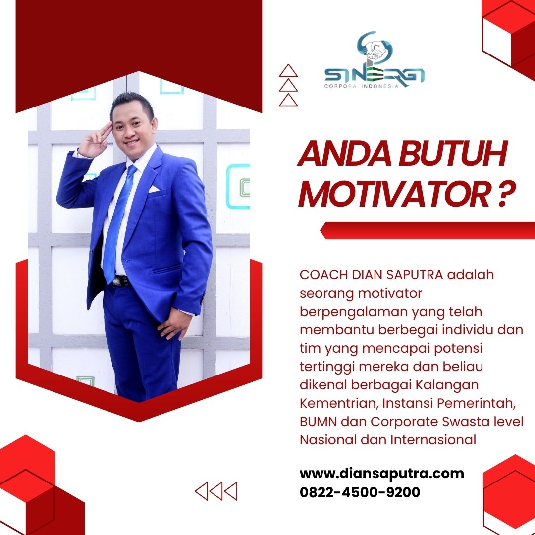 Anda Berada di Info Yang Tepat. Dian Saputra adalah seorang Motivator sekaligus Trainer sinergi corpora Indonesia yang sudah berpengalaman selama 13 Tahun. Coach Dian Saputra selalu memberikan materi yang fun dan Berdampak guna meningkatkan kinerja dan produktivitas SDM di Bisnis Anda. Coach Dian Saputra dikenal oleh Kalangan Corporate Seperti BUMN, Dinas Pemerintah, Kementerian, Hingga Corporate Swasta Lainnya berskala Nasional dan Internasional.