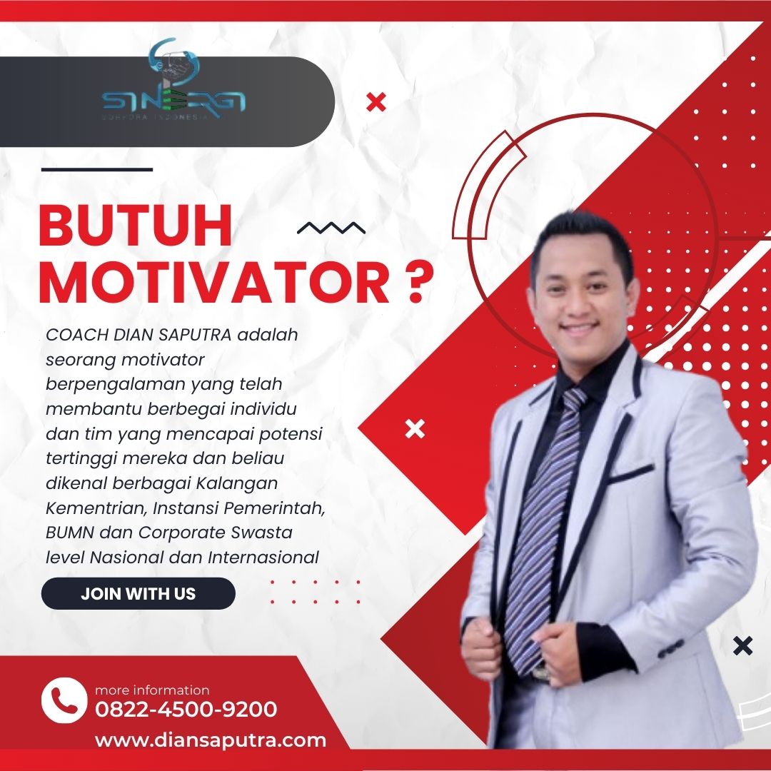 Anda Berada di Info Yang Tepat. Dian Saputra adalah seorang Motivator sekaligus Trainer sinergi corpora Indonesia yang sudah berpengalaman selama 13 Tahun. Coach Dian Saputra selalu memberikan materi yang fun dan Berdampak guna meningkatkan kinerja dan produktivitas SDM di Bisnis Anda. Coach Dian Saputra dikenal oleh Kalangan Corporate Seperti BUMN, Dinas Pemerintah, Kementerian, Hingga Corporate Swasta Lainnya berskala Nasional dan Internasional.
