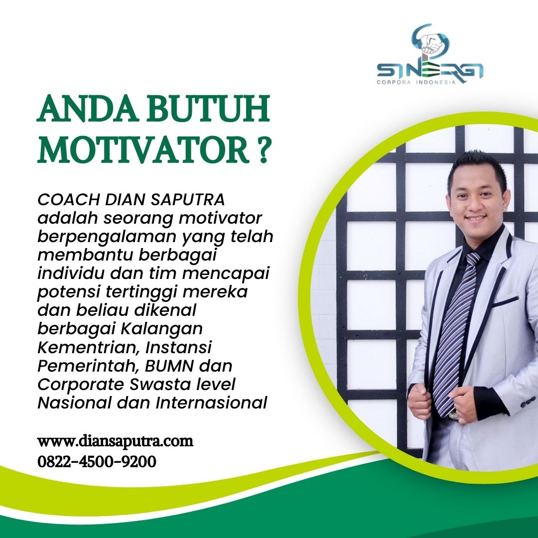 Sinergi Corpora Indonesia hadir sebagai mitra strategis bagi perusahaan yang ingin mengangkat kualitas SDM dan bisnisnya ke level berikutnya. Sinergi Corpora Indonesia di pimpin oleh Coach Dian Saputra yang sebagai Jasa Motivator Leadership dengan pengalaman lebih dari 10 tahun melayani berbagai kementerian, instansi pemerintah, BUMN maupun korporasi swasta nasional dan internasional, kami menggabungkan keilmuan berbasis psikologi modern serta aspek spiritual untuk menghasilkan hasil yang nyata. Materi kami disusun berdasarkan riset mutakhir, dan setiap program menghadirkan nuansa fun, aplikatif dan solutif sehingga peserta tidak hanya memahami, tetapi juga mampu mengaplikasikan dalam kehidupan profesional mereka.