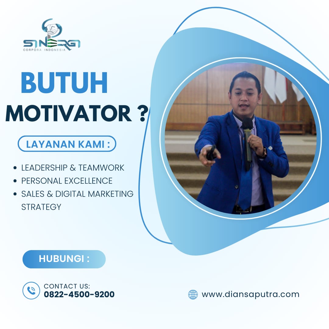 Sinergi Corpora Indonesia hadir sebagai mitra strategis bagi perusahaan yang ingin mengangkat kualitas SDM dan bisnisnya ke level berikutnya. Sinergi Corpora Indonesia di pimpin oleh Coach Dian Saputra yang sebagai Jasa Motivator Leadership dengan pengalaman lebih dari 10 tahun melayani berbagai kementerian, instansi pemerintah, BUMN maupun korporasi swasta nasional dan internasional, kami menggabungkan keilmuan berbasis psikologi modern serta aspek spiritual untuk menghasilkan hasil yang nyata. Materi kami disusun berdasarkan riset mutakhir, dan setiap program menghadirkan nuansa fun, aplikatif dan solutif sehingga peserta tidak hanya memahami, tetapi juga mampu mengaplikasikan dalam kehidupan profesional mereka.