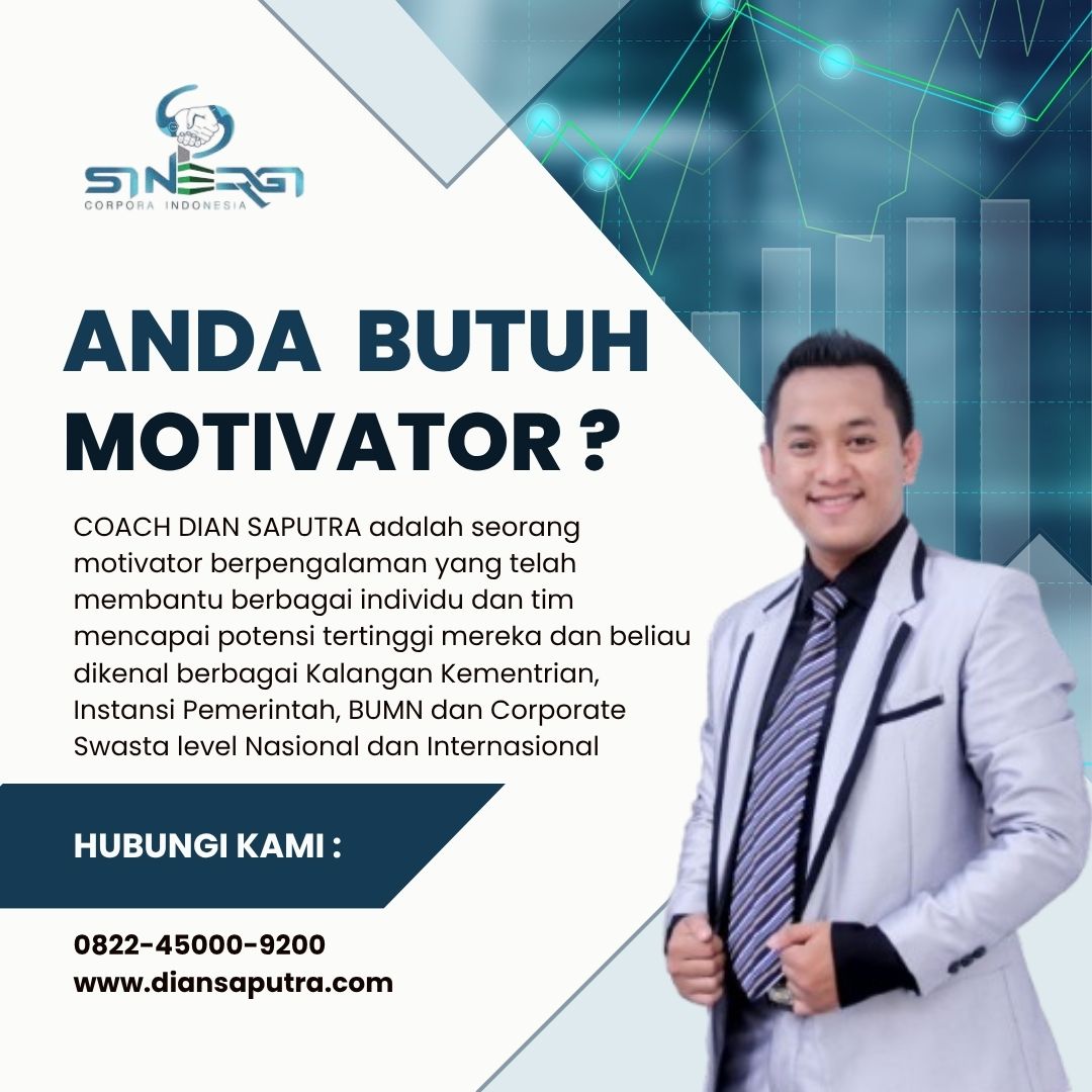Anda Berada di Info Yang Tepat. Dian Saputra adalah seorang Motivator sekaligus Trainer sinergi corpora Indonesia yang sudah berpengalaman selama 13 Tahun. Coach Dian Saputra selalu memberikan materi yang fun dan Berdampak guna meningkatkan kinerja dan produktivitas SDM di Bisnis Anda. Coach Dian Saputra dikenal oleh Kalangan Corporate Seperti BUMN, Dinas Pemerintah, Kementerian, Hingga Corporate Swasta Lainnya berskala Nasional dan Internasional.
