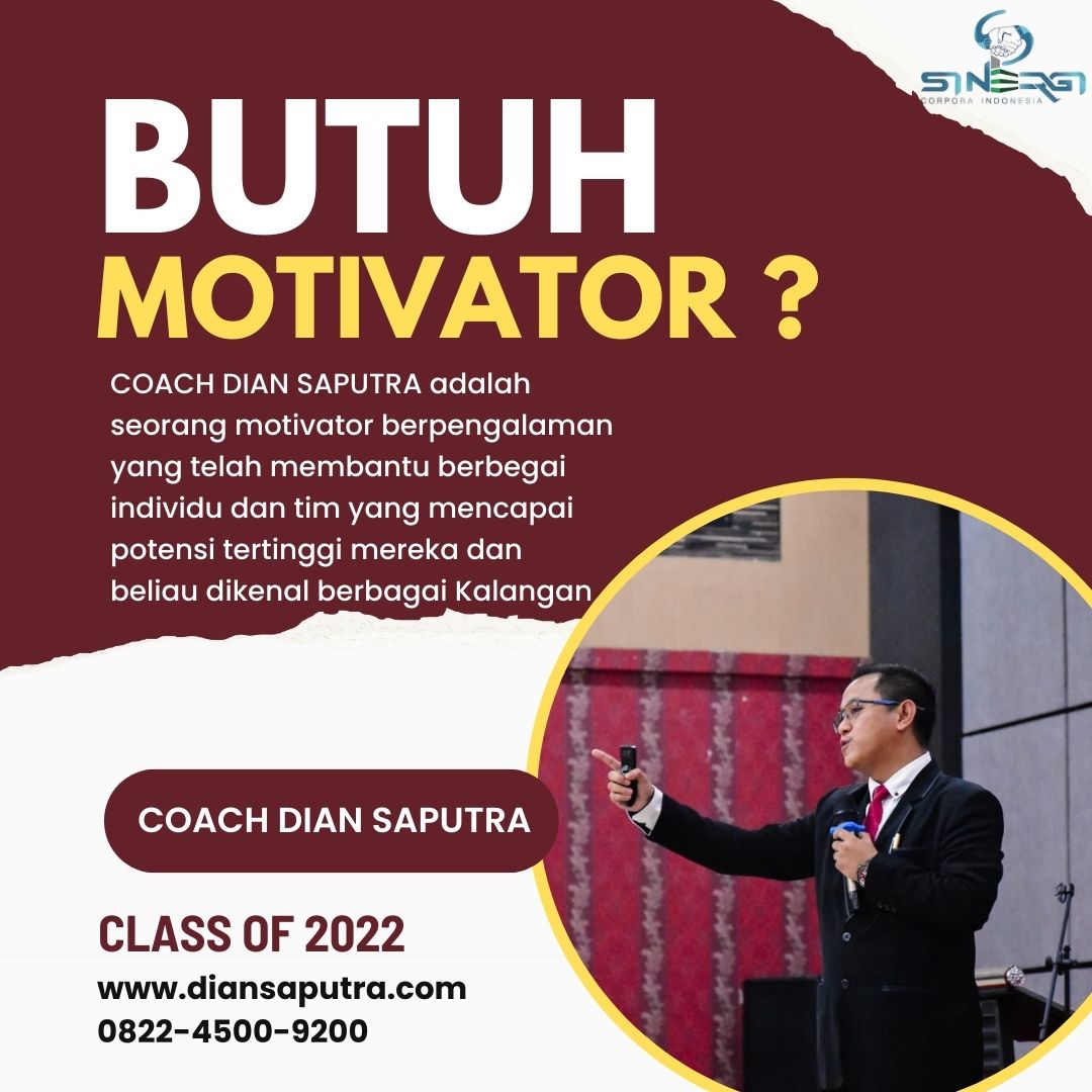 Coach Dian Saputra adalah seorang Jasa Trainer Motivator Sales profesional yang menjadi founder Sinergi Corpora Indonesia. Dengan pengalaman lebih dari satu dekade dalam bidang training motivasi, leadership, communication skill, dan organizational development, beliau dikenal sebagai coach yang inspiratif, komunikatif, serta mampu membangun suasana pelatihan yang menyenangkan dan penuh nilai pembelajaran. Pendekatan beliau menekankan transformasi pola pikir, karakter, serta peningkatan kemampuan praktis peserta agar mampu menghadapi tantangan kerja dan kehidupan dengan lebih percaya diri dan produktif.