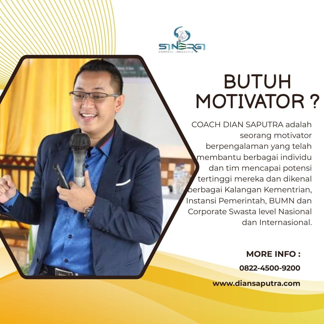 Anda Berada di Info Yang Tepat. Dian Saputra adalah seorang Motivator sekaligus Trainer sinergi corpora Indonesia yang sudah berpengalaman selama 13 Tahun. Coach Dian Saputra selalu memberikan materi yang fun dan Berdampak guna meningkatkan kinerja dan produktivitas SDM di Bisnis Anda. Coach Dian Saputra dikenal oleh Kalangan Corporate Seperti BUMN, Dinas Pemerintah, Kementerian, Hingga Corporate Swasta Lainnya berskala Nasional dan Internasional.