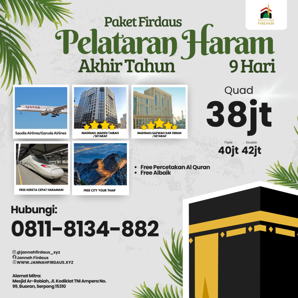 Tingkatkan kualitas ibadah Anda dengan fasilitas terbaik dan pelayanan berkelas dunia. Bersama Jannah Firdaus – The Best Travel, setiap langkah menuju Baitullah menjadi perjalanan menuju surga.