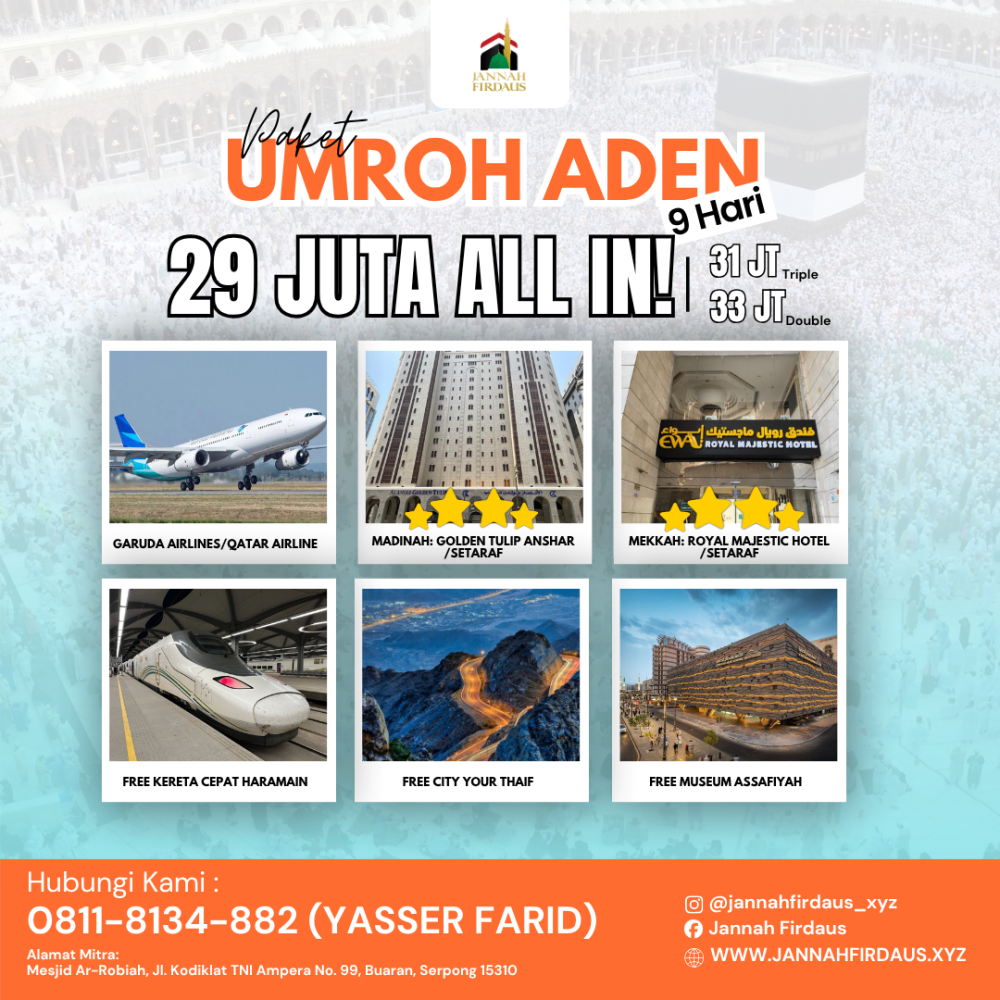 Tingkatkan kualitas ibadah Anda dengan fasilitas terbaik dan pelayanan berkelas dunia. Bersama Jannah Firdaus – The Best Travel, setiap langkah menuju Baitullah menjadi perjalanan menuju surga.
