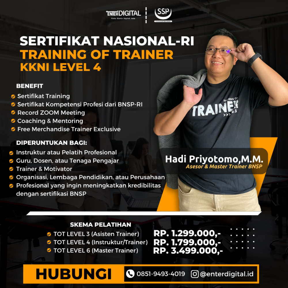 Sertifikasi Training of Trainer (TOT) di Enter Digital: Tingkatkan Keahlian Mengajar Anda!