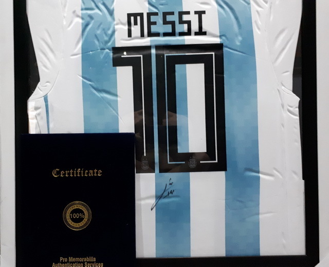 jersey bertandatangan Lionel Messi otentik dengan sertifikat